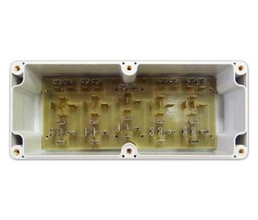 Представляет собой установленную в герметичный корпус печатную плату с контактами (гнезда и штыри 6,3 мм). Гнездовые контакты объединены в группы, позволяющие установить в них плоские предохранители и устройства в корпусах “мини” реле, и электрически соединены с соответствующими штыревыми контактами.