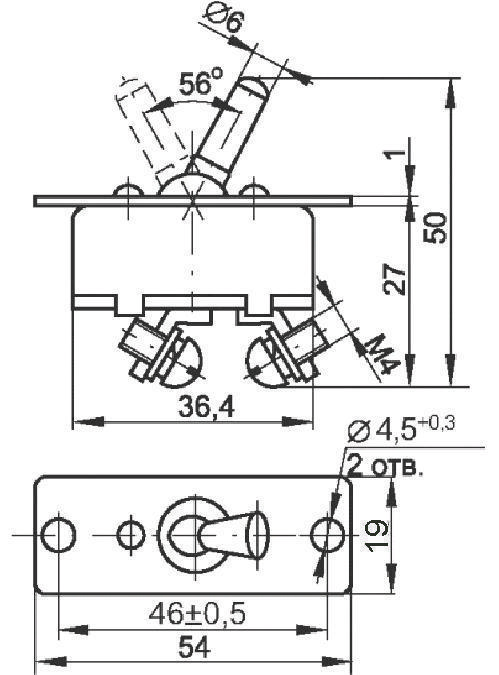В-45М Вылючатель с фиксацией в двух положения Вкл-(Выкл) предназначен для работы в электрических сетях при напряжении до 30 В