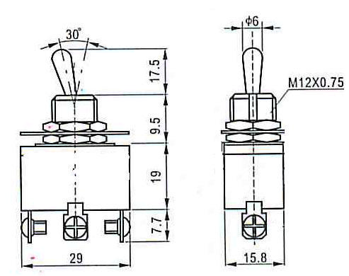 Тумблер 3-х П Вкл-Выкл-Вкл фиксация, винт 12В/20А, 24В/10А, 250В/5А КЭП