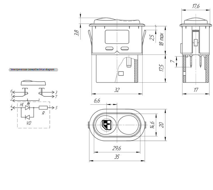 Присоединение: 7 контактов серии 2.8, защёлки