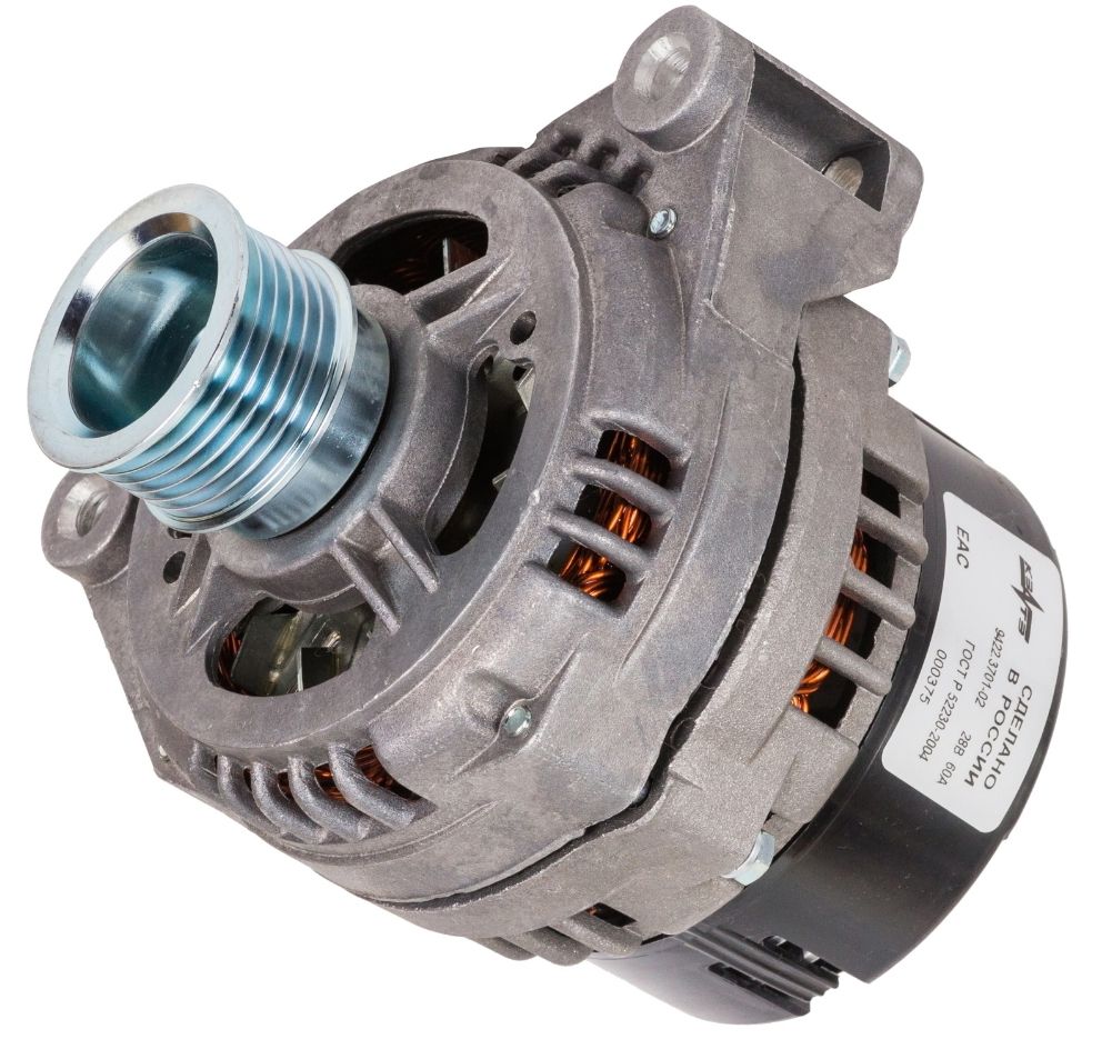 Генератор для МАЗ, Урал дв.ЯМЗ Е2 / 28В 60А, шкив поликлиновой ЗИТ (КЗАТЭ)