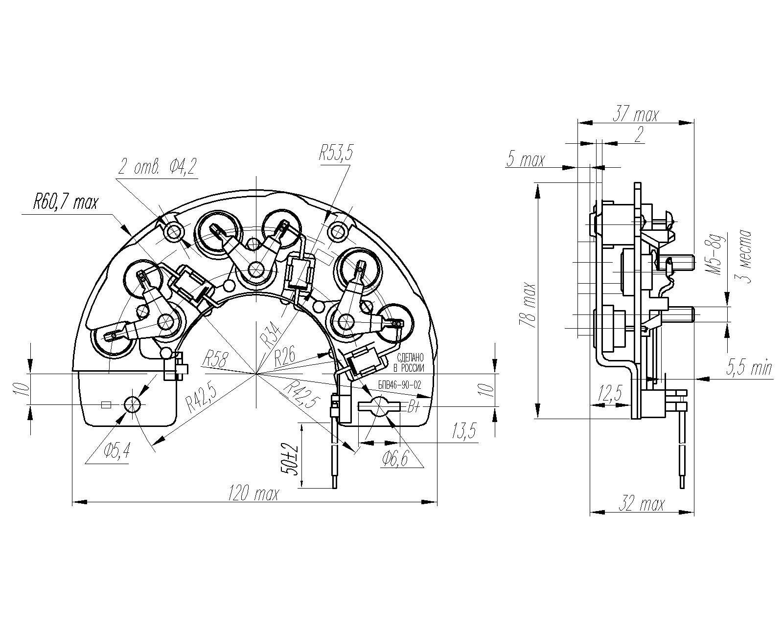 Диодный мост для ЗИЛ ген.2022.3701 / 28В 90А Орбита