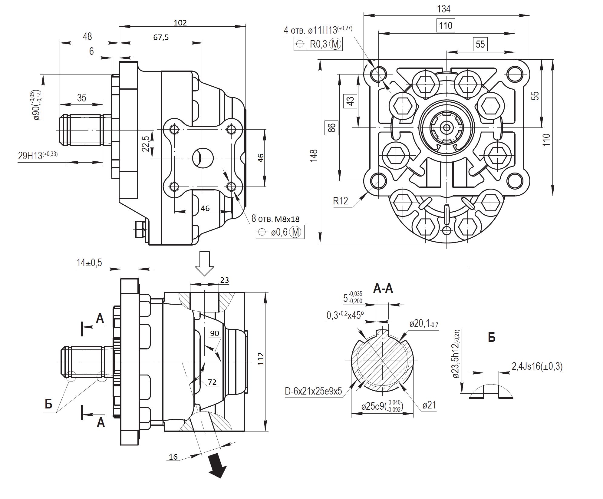 Насос шестеренный для МТЗ, ХТЗ, ЧТЗ, Комбайн и др. / 50 см3, 20 МПа, плоский левый, чугун (НШ-50М-4Л) Белар