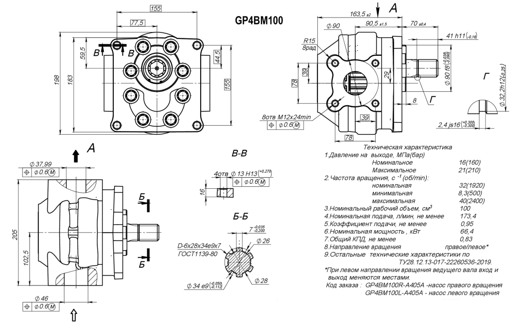 Номинальное давление: 160 бар