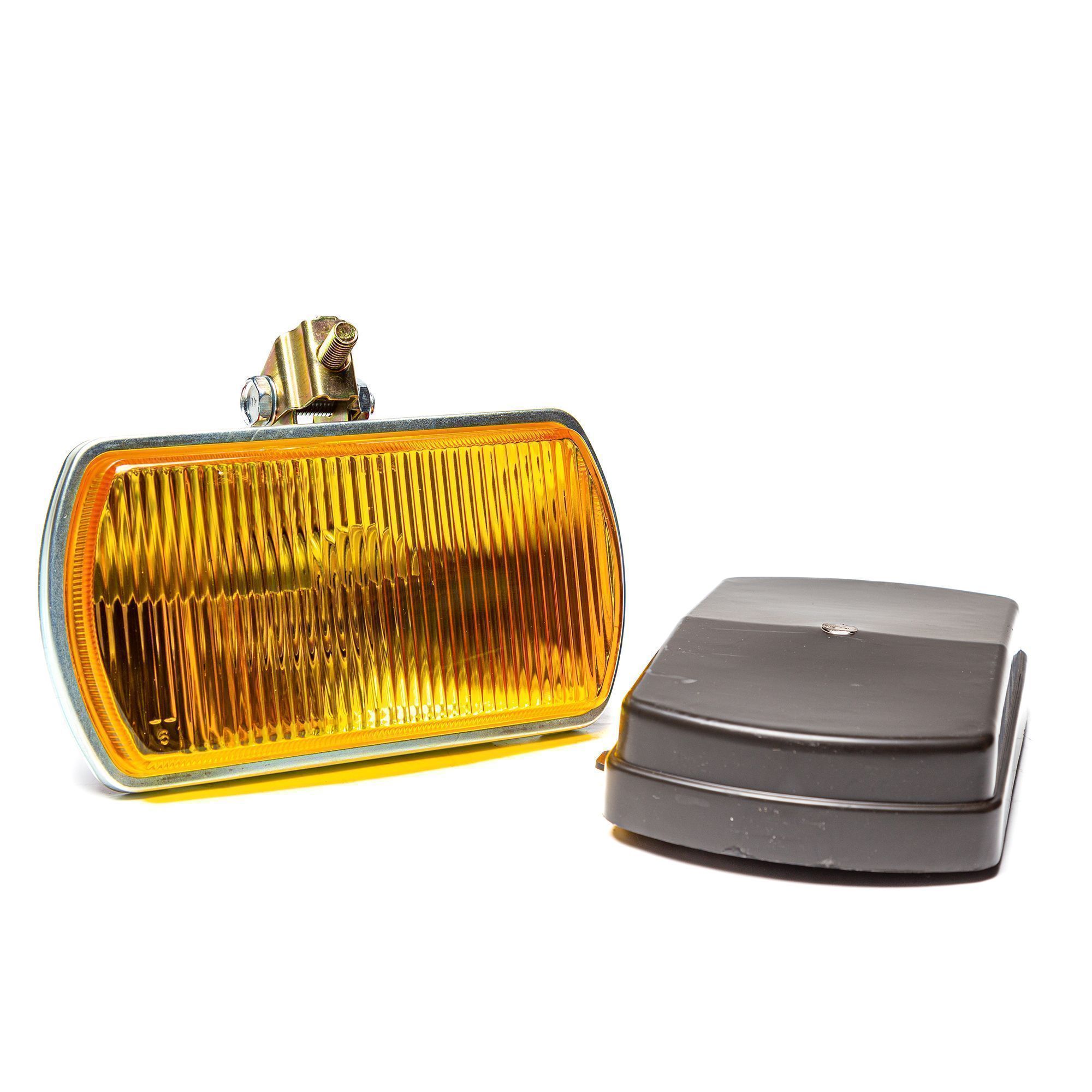 Фара противотуманная для ГАЗ, ЗИЛ, КамАЗ, МАЗ и др. / без ламп (H1) прямоугольная жёлтая, с крышкой AE