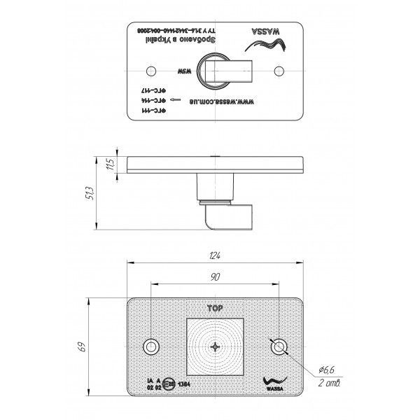 Фонарь габаритный для ВАЗ, ГАЗ, УАЗ / б/л (W5W) разъем (2-конт., прямоугол.) белый WASSA