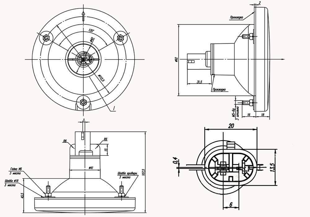 Фонарь тормоза для ЛиАЗ, ПАЗ / 24В, без жгута, разъем AMP по центру (2-конт., овал) КЭП