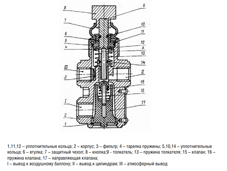 Кран обеспечивает растормаживание энергоаккумуляторов ведущей оси при срабатывании аварийной тормозной системы, что позволяет провести буксировку ТС к месту ремонта или стоянки.